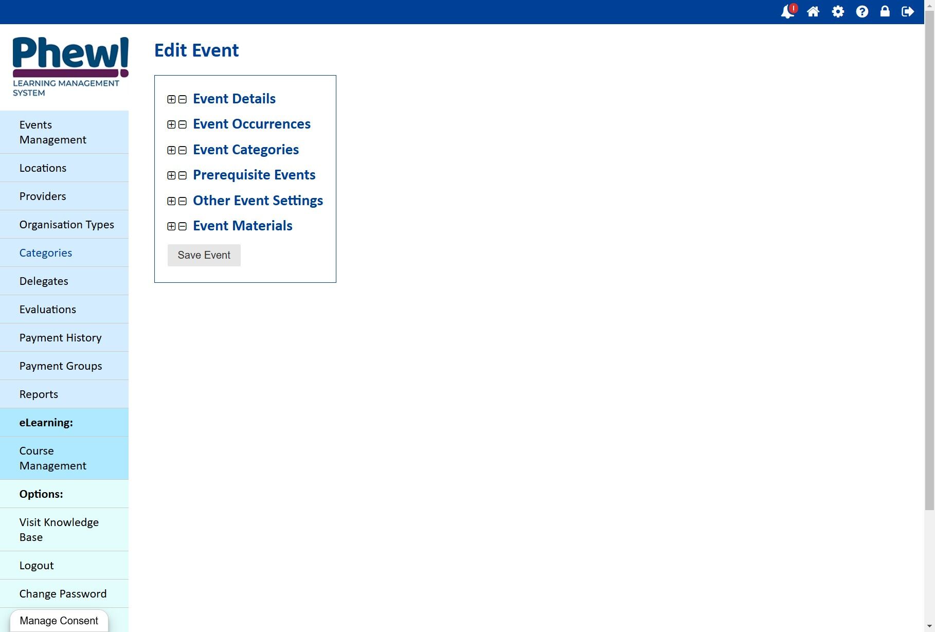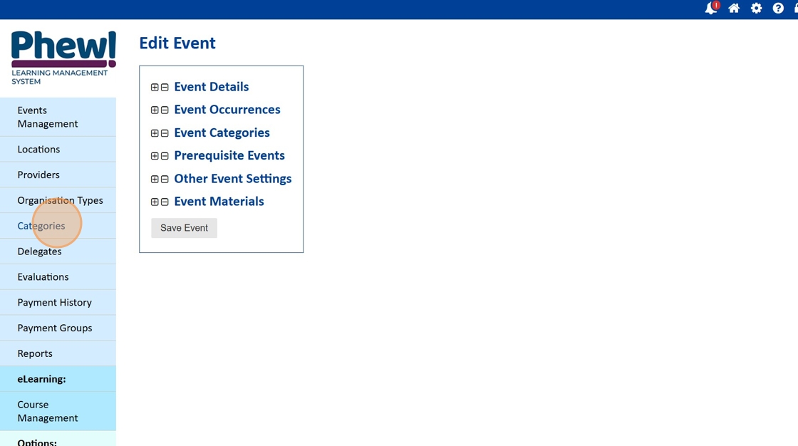 To Add new Categories, click on the Categories heading in the left-hand navigation.