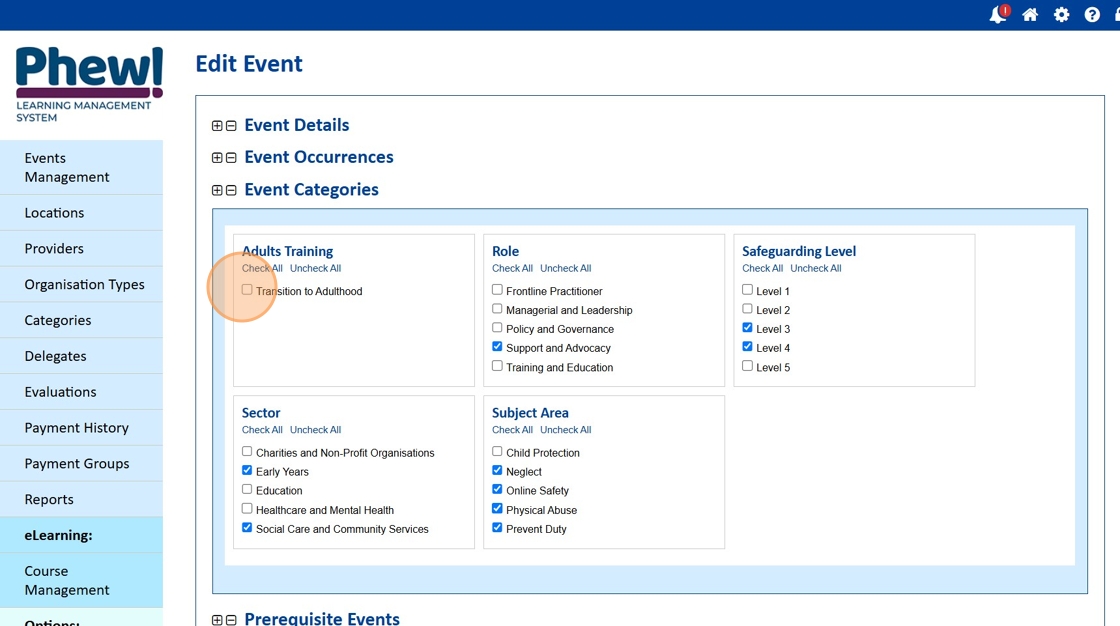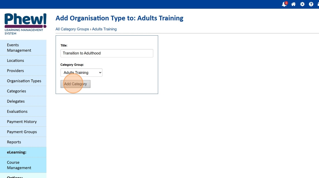 Here is the new Category Group Adults Training and Category Transition to Adulthood.