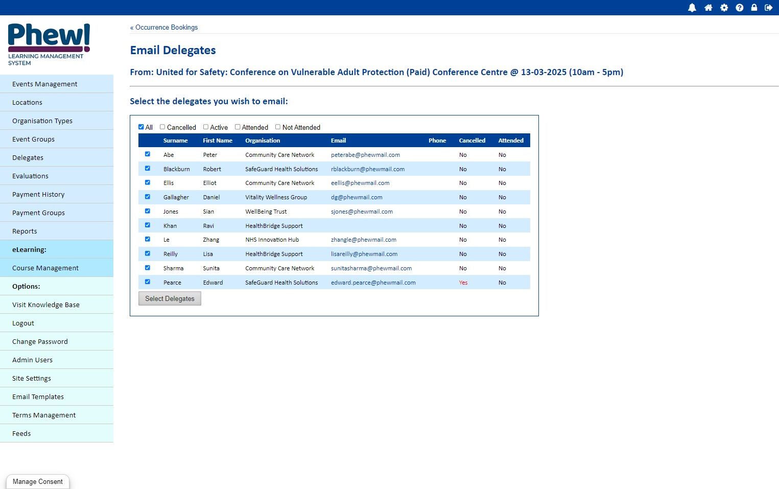 Our Learning Management System enables you to mass email all people booked onto a course, regardless of whether they have been marked as attended or not.
