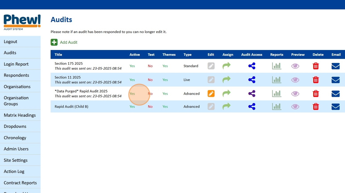 Can you see that the audit name is now prefixed with *Data Purged*.