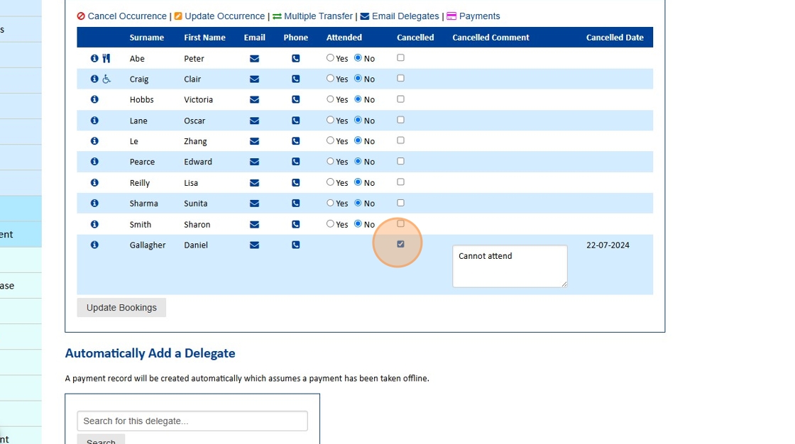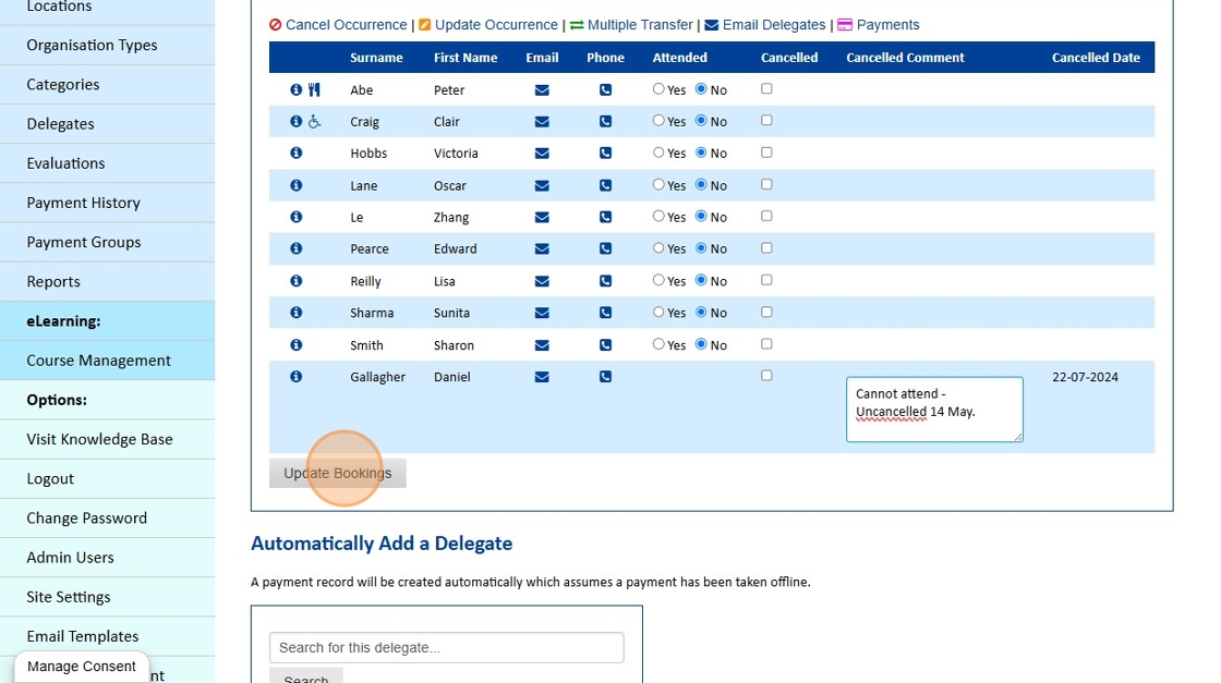 From time to time, delegates cancel their booking on a course in error. In this article, we look at the process to rebook them onto the Occurrence.