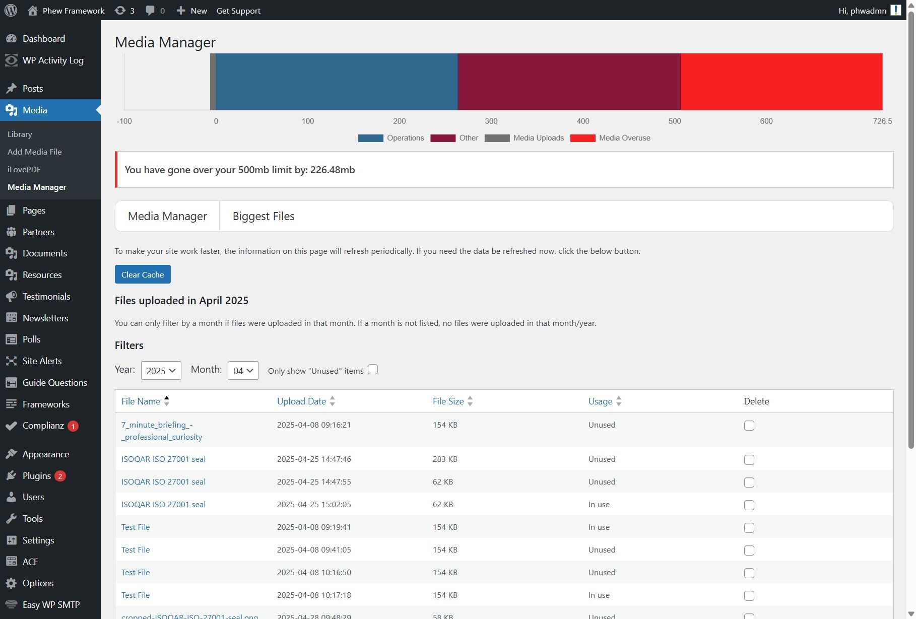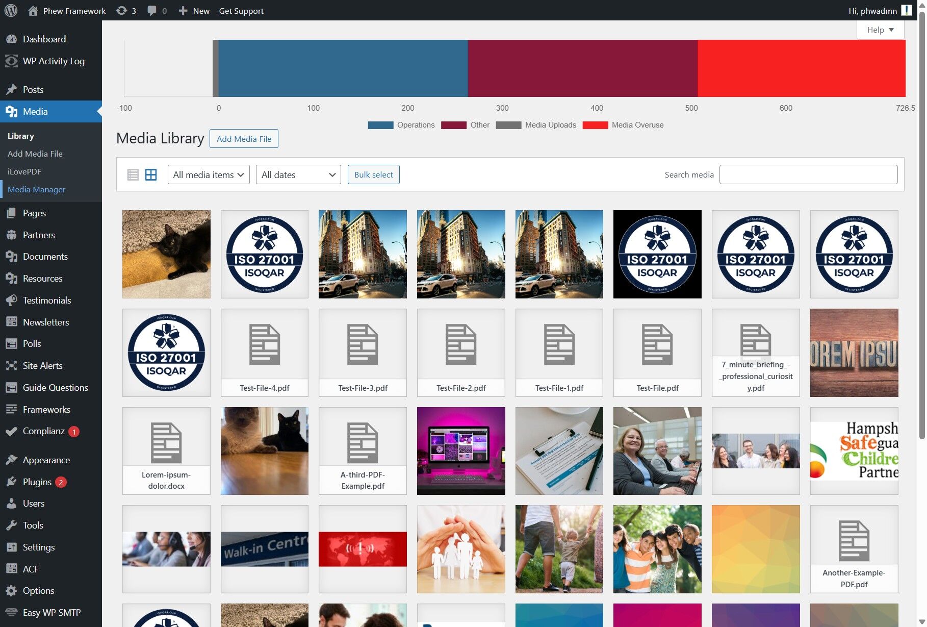 The visual usage bar is also displayed on the Media Manager page. Navigate to Media > Media Manager in the left-hand navigation.