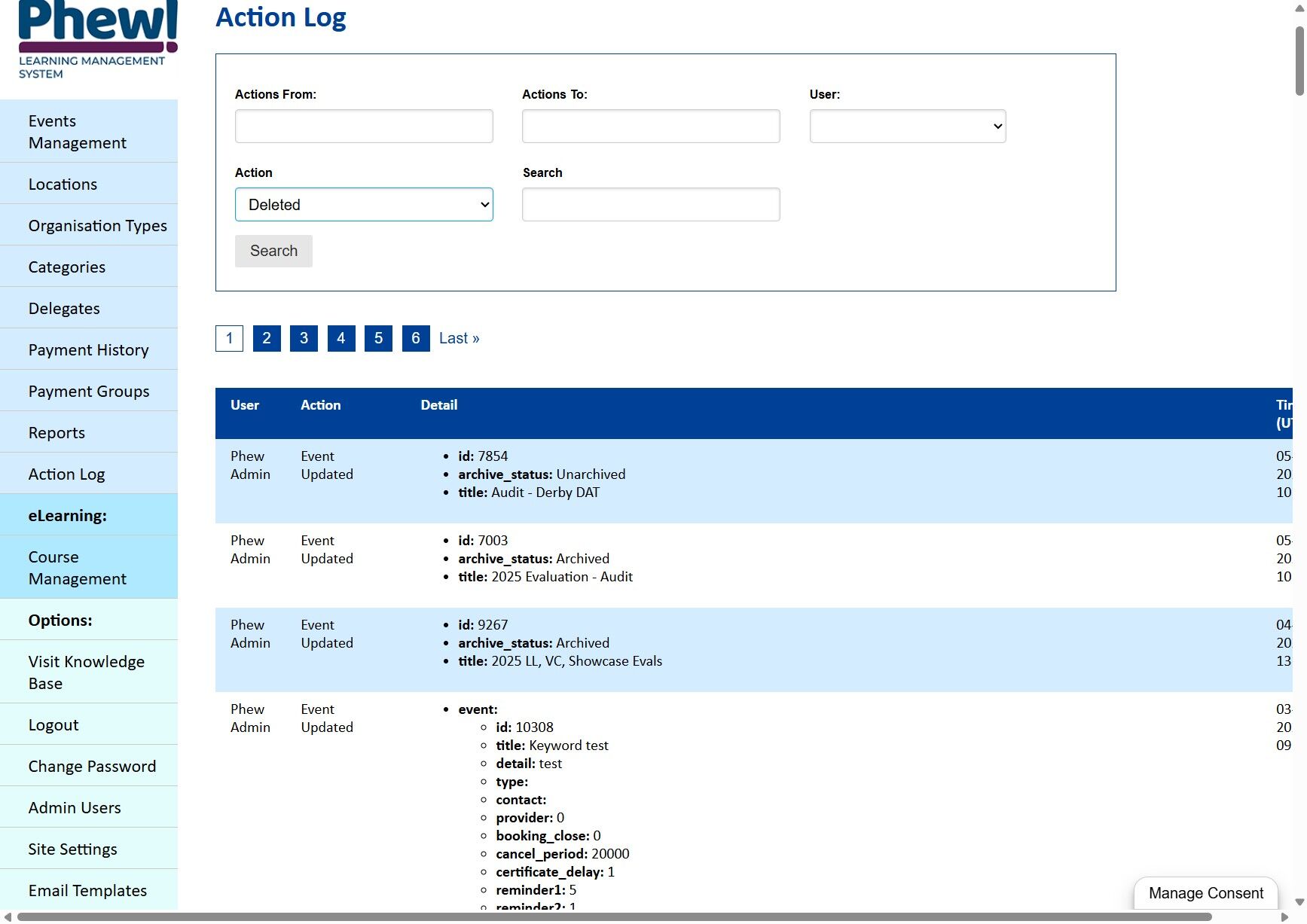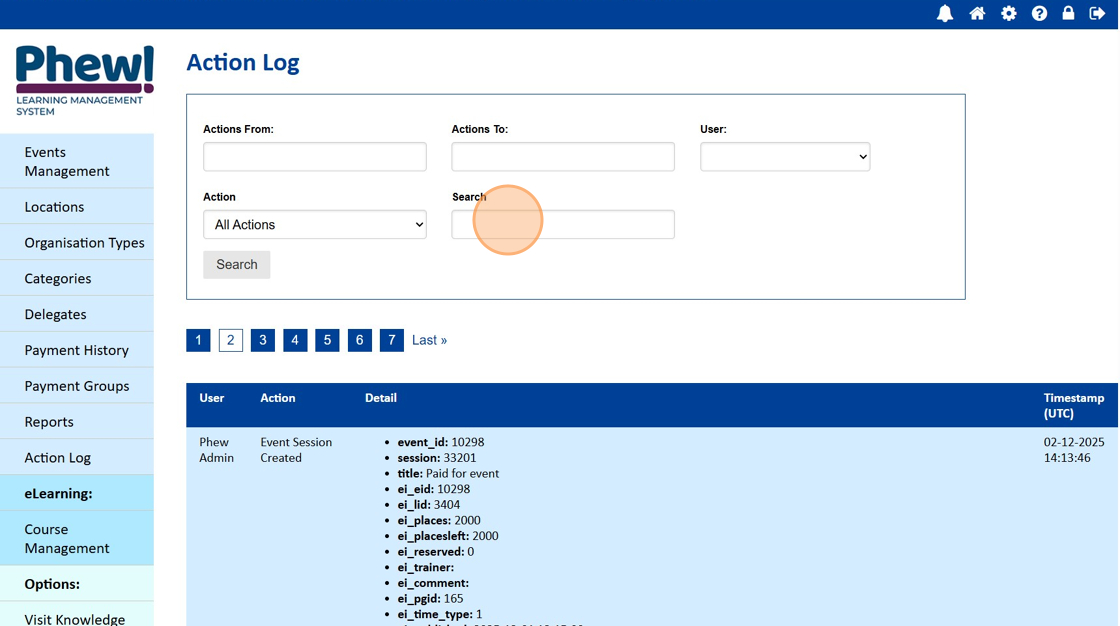 You have a number of different ways to filter the Log including, Dates, Users and Actions as well as the ability to Search the log.