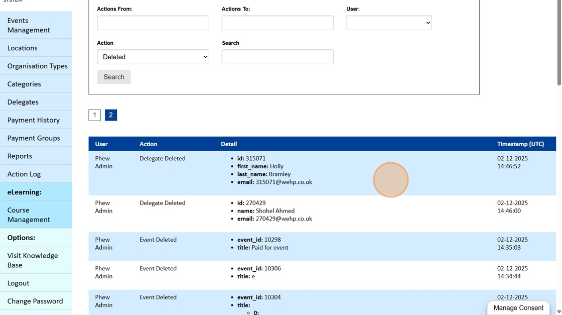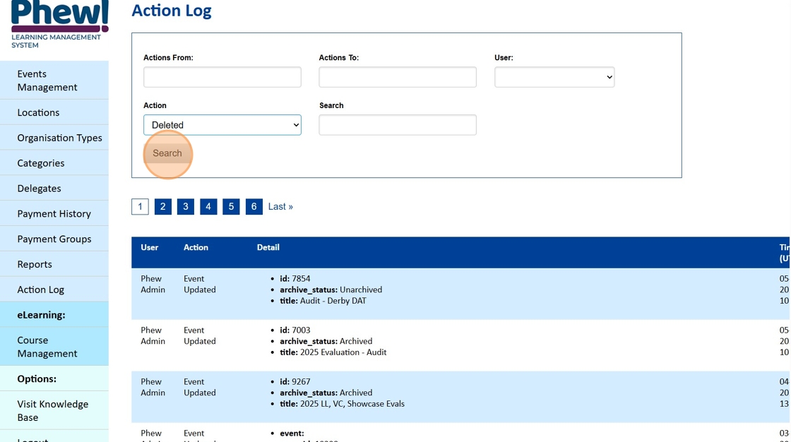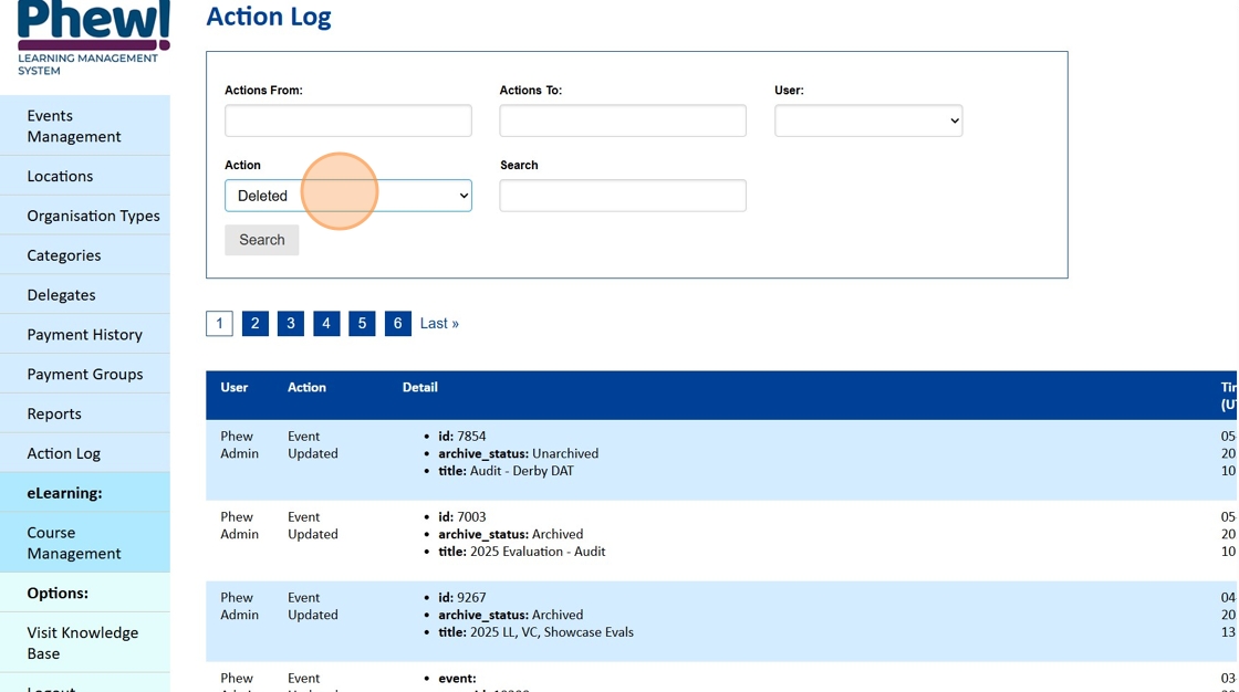 The Action Log will refresh and only the Deleted actions will be displayed.