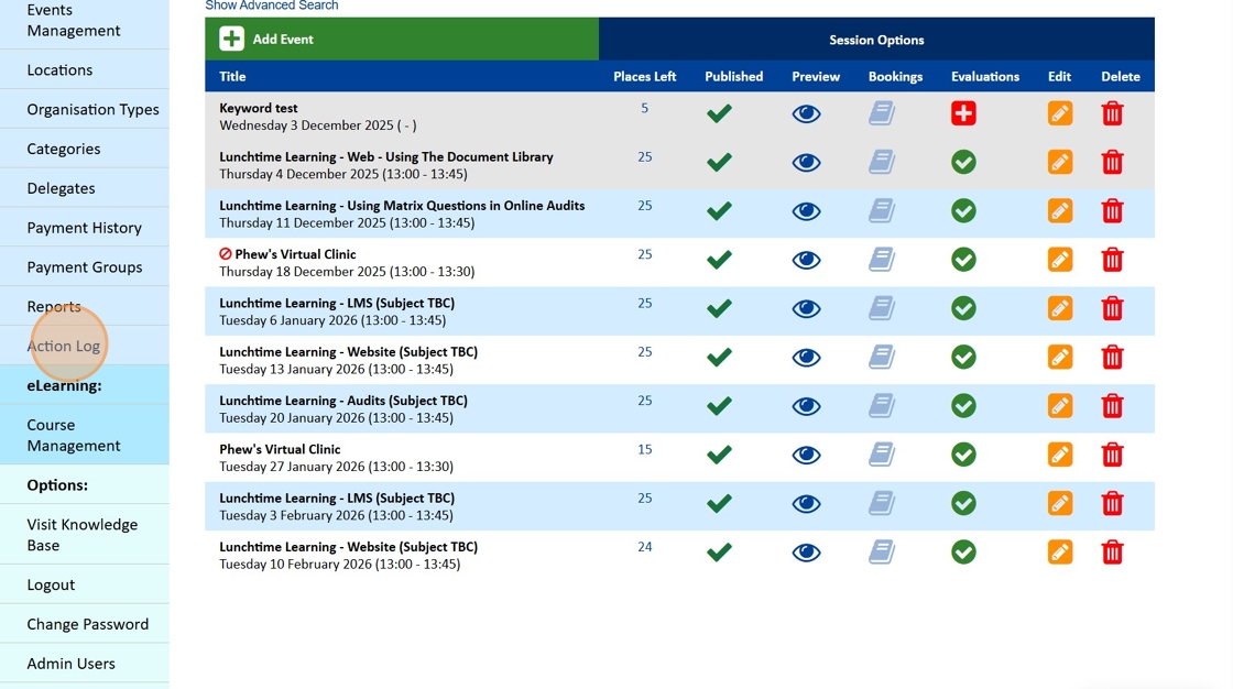 From the Admin menu, click on the Action Log option in the left-hand navigation.